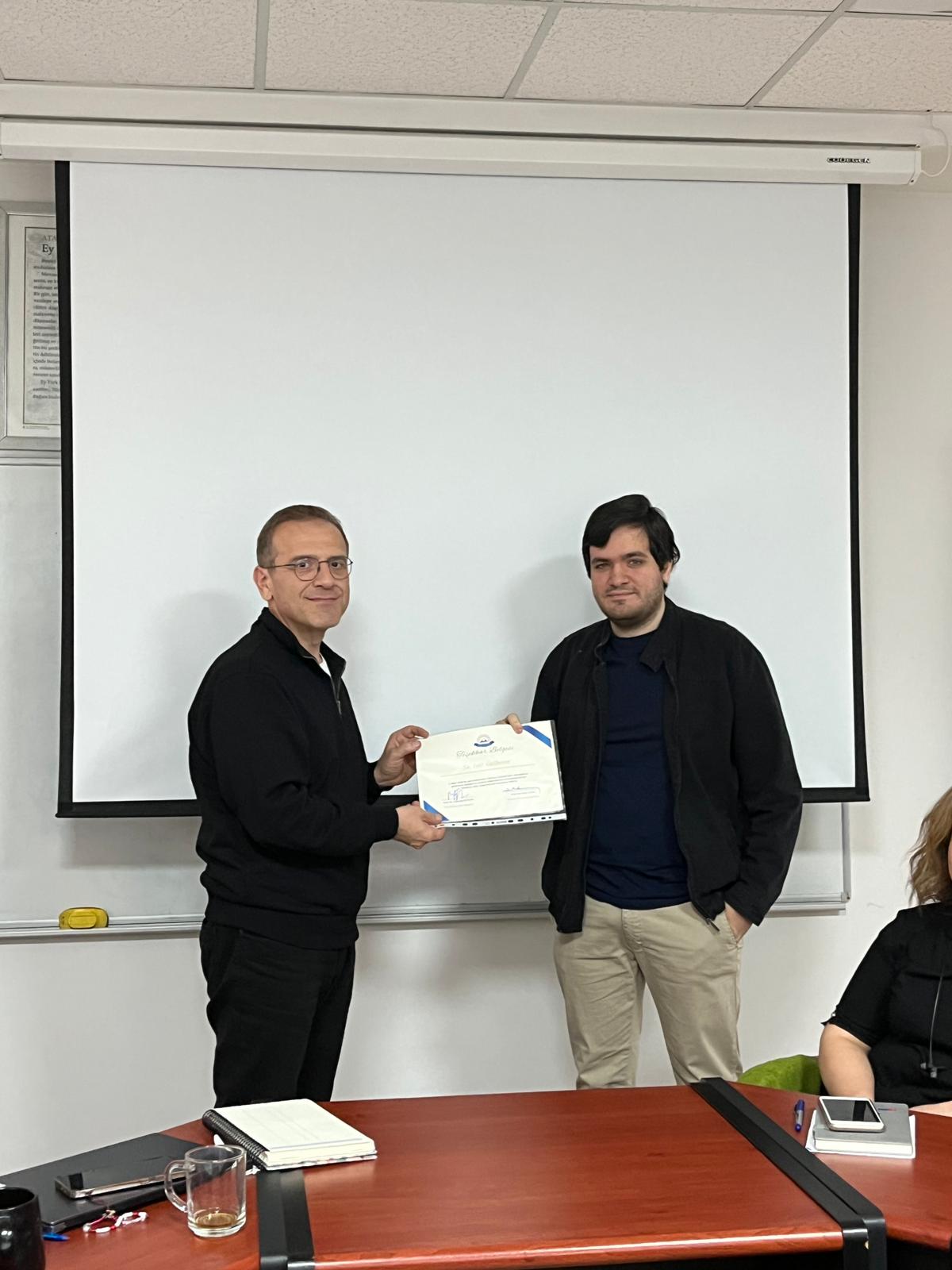 Mustafa Öztürk tarafından kendisine Başarı Sertifikası takdim edildi.